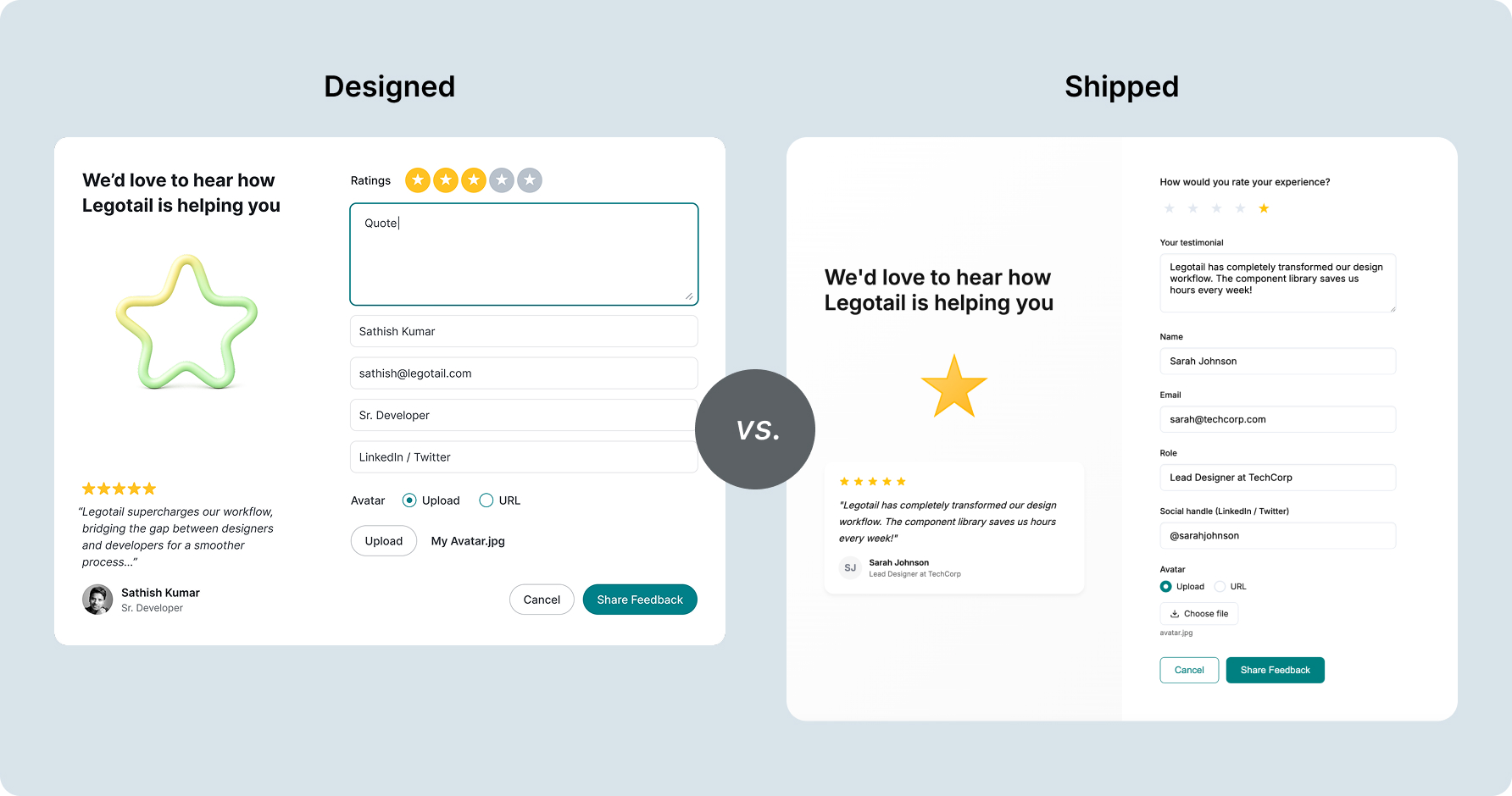 A real example of how UI drifts when design and development don’t share the same foundation.